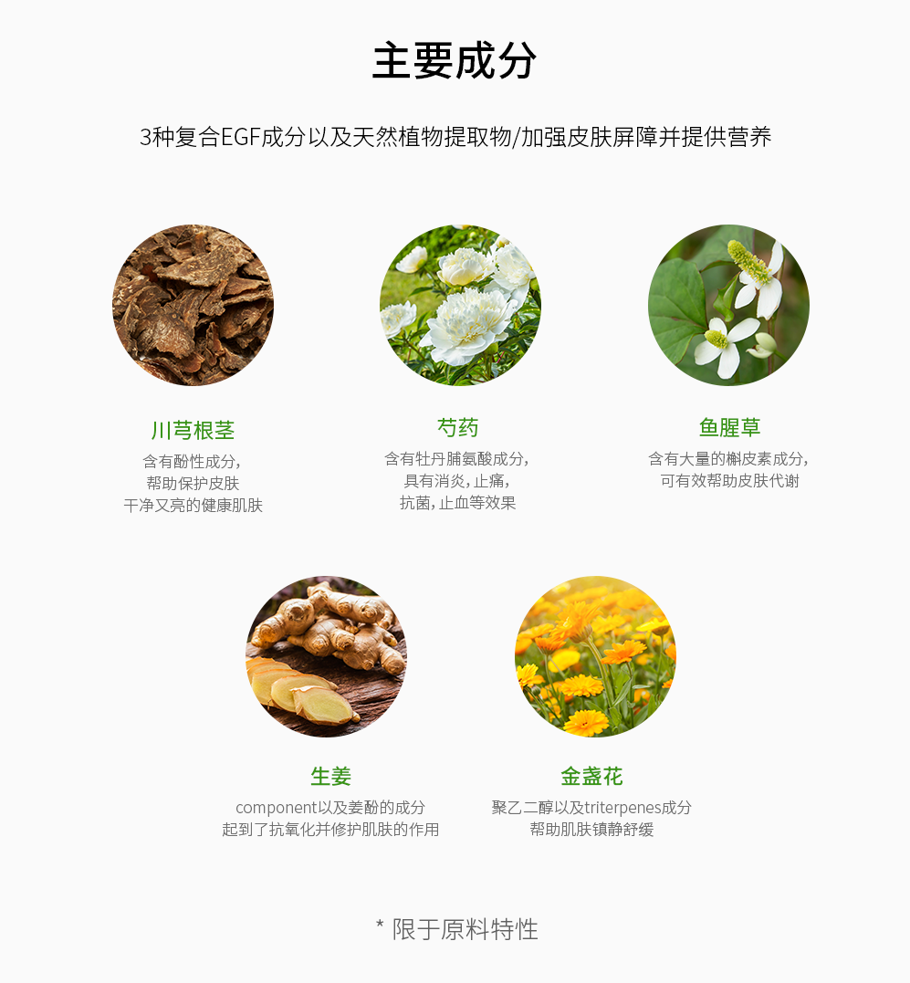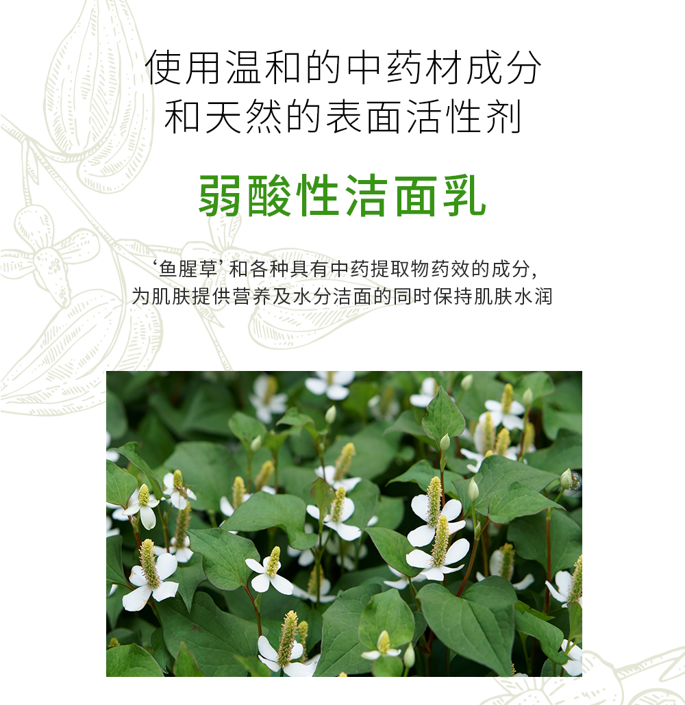 ‘鱼腥草’和各种具有中药提取物药效的成分,为肌肤提供营养及水分